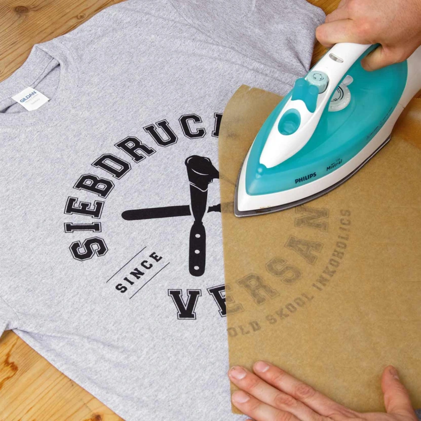 After printing, let the ink dry in air, or speed up drying with a hairdryer. On textiles, the ink must be fixed afterwards with an iron (set according to ink type) or in a dryer to withstand washing. When ironing, place a piece of baking paper between the iron and the fabric to protect the pattern. Fixing ensures the ink adheres firmly to the material and the print endures repeated use and washing. For paper, natural drying is often sufficient, but dryer use can help here too. For more even fixing, a heat press is recommended.
