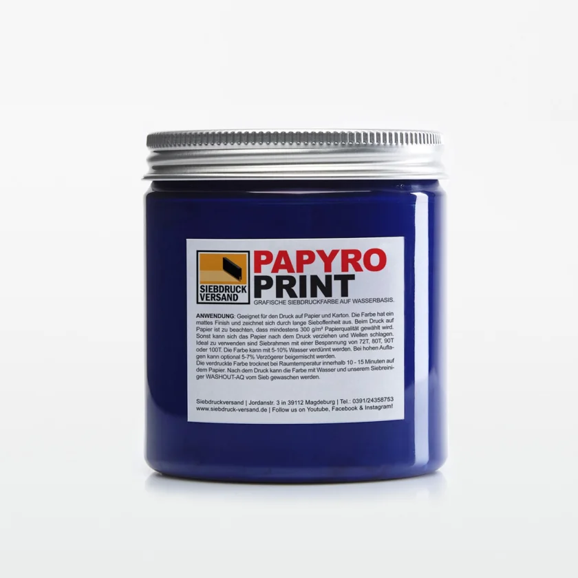 All shades can be mixed with each other as desired. To create translucent, transparent colors, colored colors can be mixed with the colorless binder PAPYROPRINT . Opaque white is usually used for tinting and mixing pastel shades. Prints with PAPYROPRINT inks have a matte surface. If a glossy surface is required, the print is overprinted with the transparent colorless varnish PAPYROPRINT .Comment