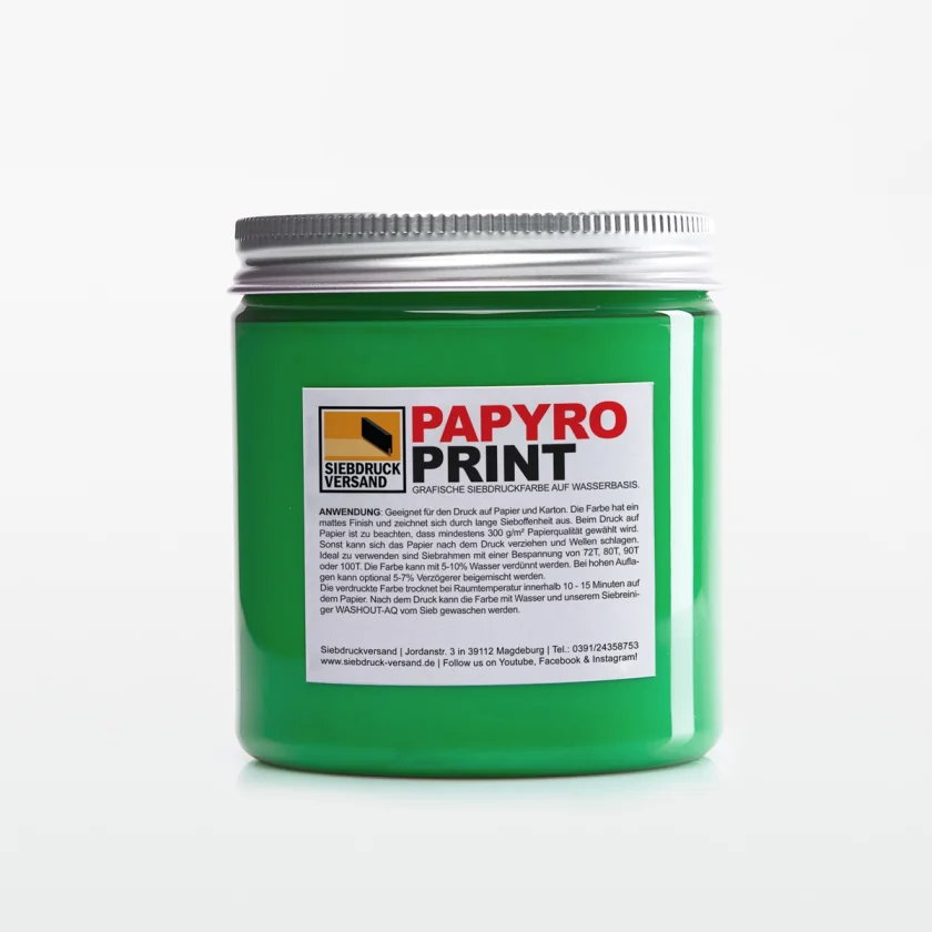All shades can be mixed with each other as desired. To create translucent, transparent colors, colored colors can be mixed with the colorless binder PAPYROPRINT . Opaque white is usually used for tinting and mixing pastel shades. Prints with PAPYROPRINT inks have a matte surface. If a glossy surface is required, the print is overprinted with the transparent colorless varnish PAPYROPRINT .Comment