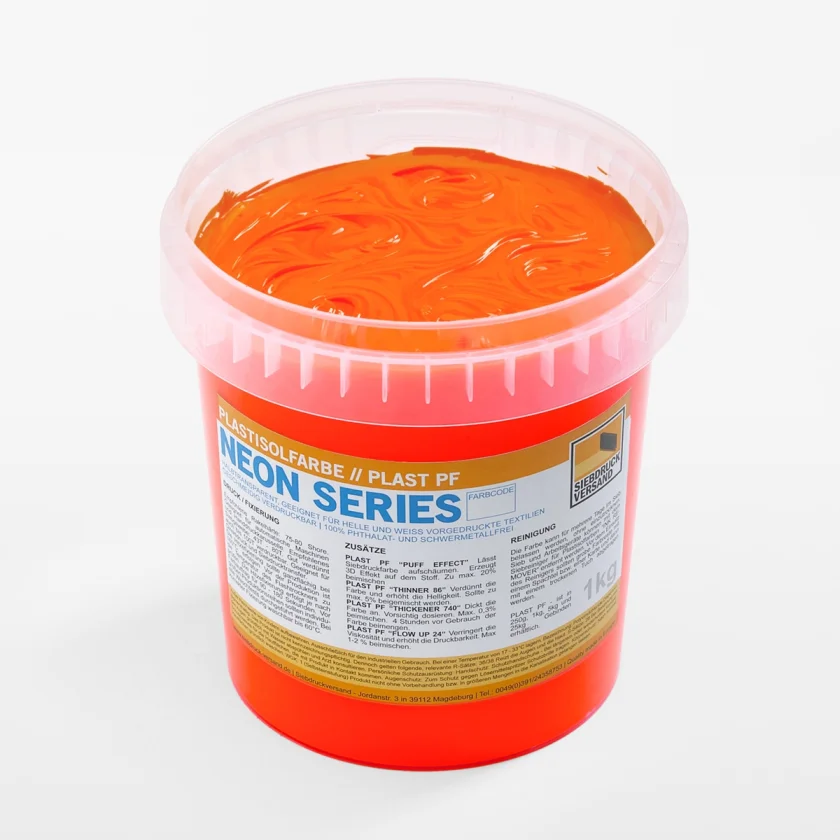 PLAST PF colors perfectly cover dark and black textiles. Only fluorescent neon colors and CMYK colors are generally less opaque. If you want to print on dark fabric, you must first underprint with white FLASHWEISS .
