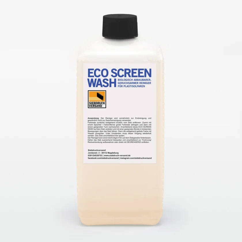 Anyone who works with plastisol paints should have this effective, solvent-free, biodegradable cleaner at home. ECO SCREEN WASH removes stubborn ink residues and a large proportion of ghosts.