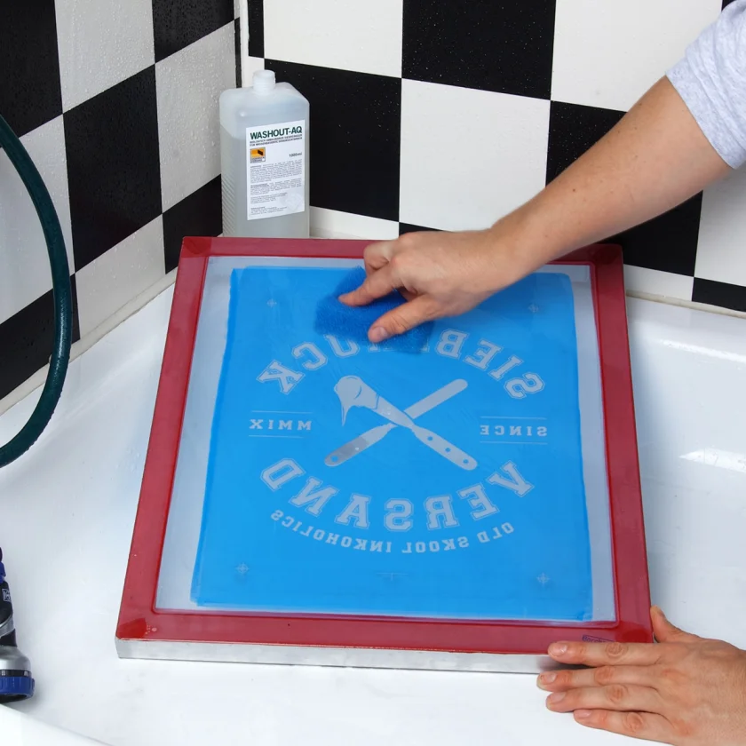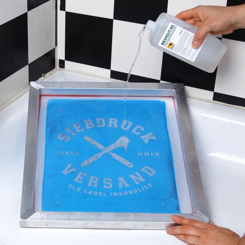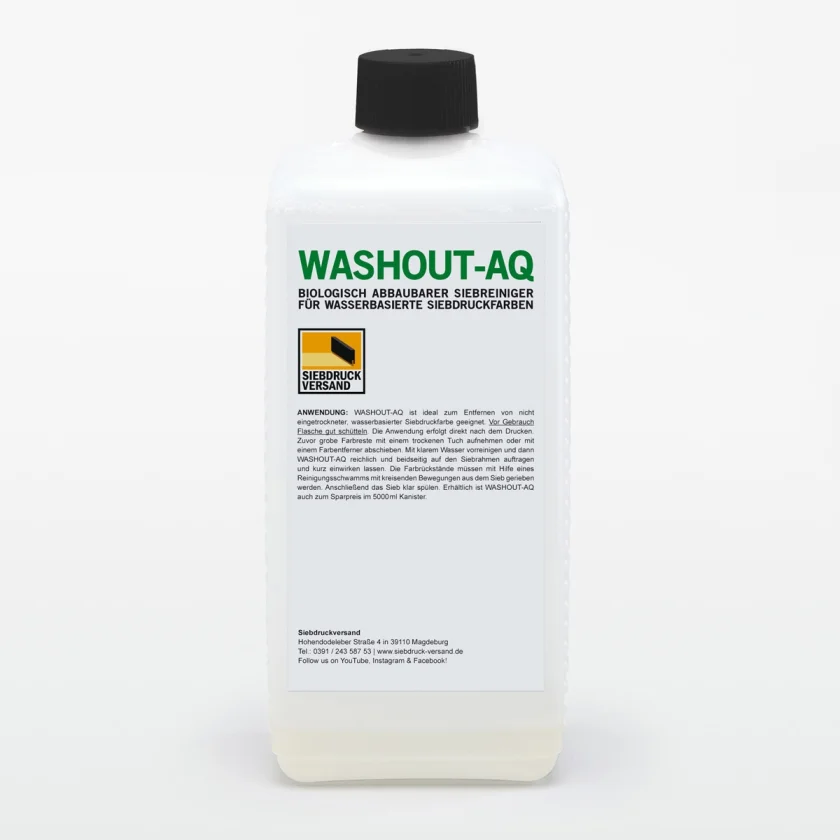 WASHOUT-AQ is a biodegradable cleaner for water-based paint that reliably removes paint residues from mesh and thus prevents ghosting. It can also be used to clean printing tables and work tools (squeegee, painter's spatula). Unlike many common strainer cleaners, this product can be flushed down the drain