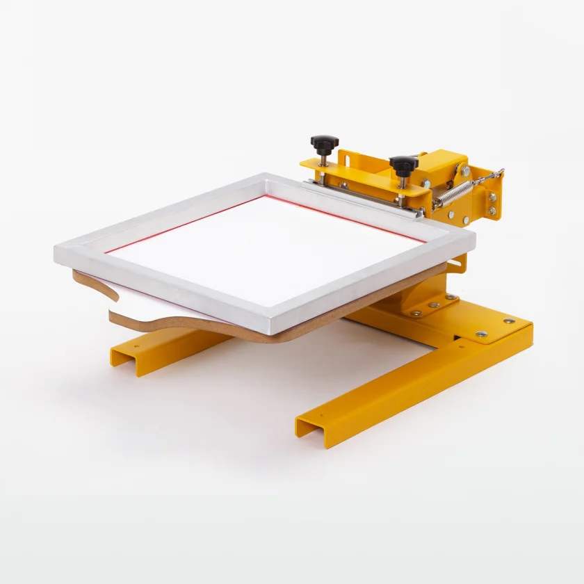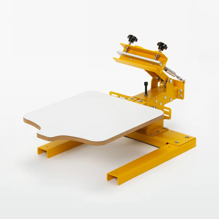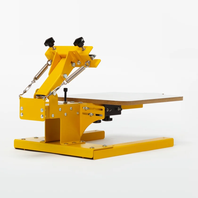 The HDT1000 is the ideal solution for professional, single-color screen printing on t-shirts, sweatshirts, pullovers, jute bags, etc. With this handheld desktop device, perfect printing results are achieved on textiles as well as wood, leather and cardboard. Made of laser-cut steel, the device is robust and designed for continuous use. The machine does not require additional attachment to tables/worktops and is therefore portable.