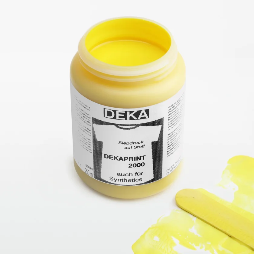 DEKAPRINT 2000 is a fabric-safe, vibrantly colored screen printing ink for high-quality prints on medium-colored and light-colored fabrics. Ideal for cotton, polyester, synthetics and blended fabrics. The paint is environmentally friendly and manufactured according to German quality standards. Individual colors are ready for printing.