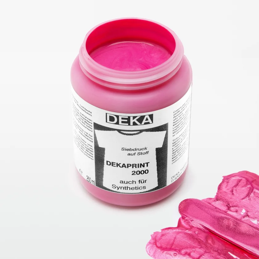 DEKAPRINT 2000 is a fabric-safe, vibrantly colored screen printing ink for high-quality prints on medium-colored and light-colored textiles. Ideal for cotton, polyester, synthetics and blended fabrics. The paint is environmentally friendly and manufactured according to German quality standards. Individual colors are ready for printing.