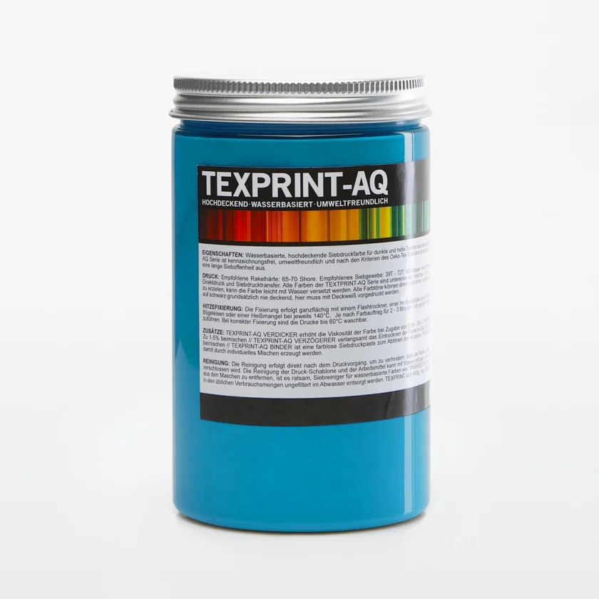 TEXPRINT-AQ is an opaque premium screen printing ink for dark, medium and light fabrics made from cotton, polyester, synthetics and blended fabrics. The paint is water-based, environmentally friendly and manufactured according to the criteria of the Oeko-Tex-100 standard. The ink is single component and ready to print. It impresses with high-quality print results and very good resistance to washing. Suitable for T-shirts, bags, hoodies, shorts, etc.