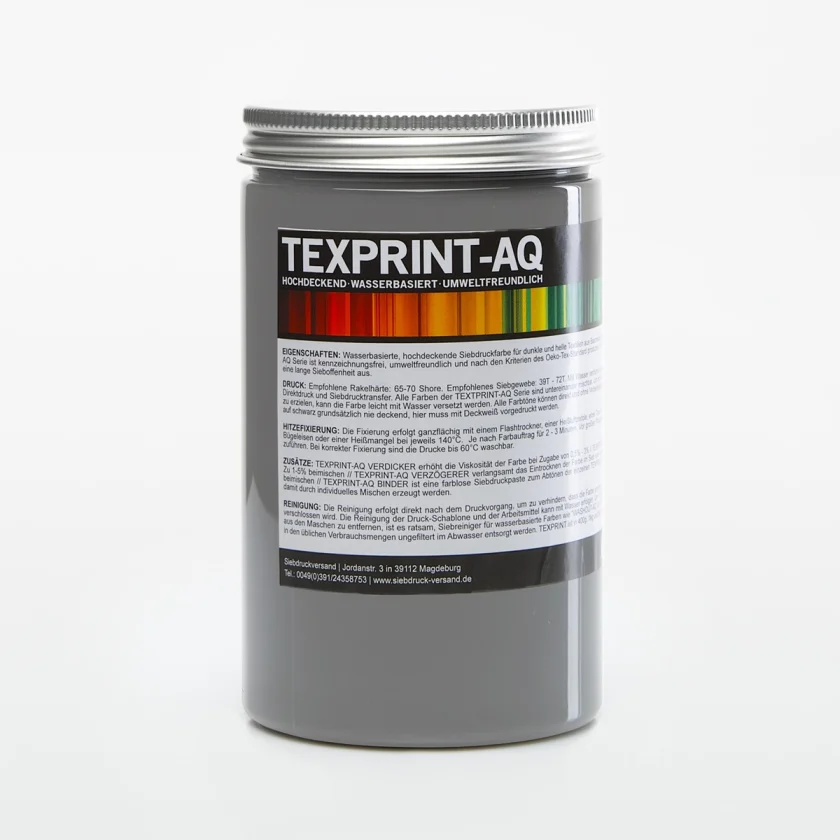 TEXPRINT-AQ is an opaque premium screen printing ink for dark, medium and light fabrics made from cotton, polyester, synthetics and blended fabrics. The paint is water-based, environmentally friendly and manufactured according to the criteria of the Oeko-Tex-100 standard. The ink is single component and ready to print. It impresses with high-quality print results and very good resistance to washing. Suitable for T-shirts, bags, hoodies, shorts, etc.