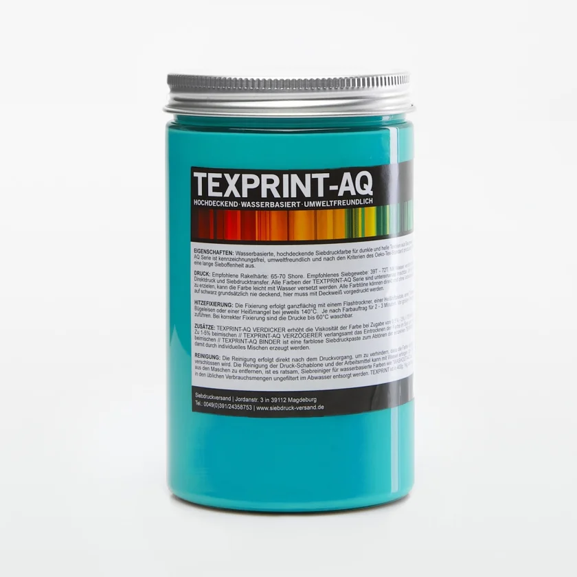 TEXPRINT-AQ is an opaque premium screen printing ink for dark, medium and light fabrics made from cotton, polyester, synthetics and blended fabrics. The paint is water-based, environmentally friendly and manufactured according to the criteria of the Oeko-Tex-100 standard. The ink is single component and ready to print. It impresses with high-quality print results and very good resistance to washing. Suitable for T-shirts, bags, hoodies, shorts, etc.